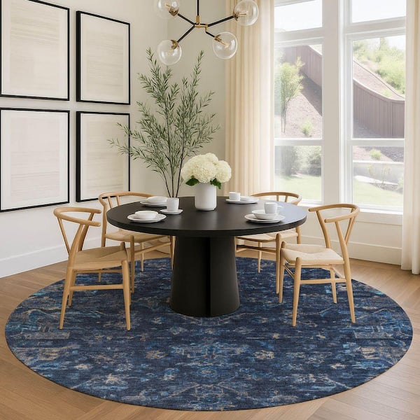 Chantille Machine Washable Indoor/Outdoor Abstract ACN2322 Navy 8 ft. x 8 ft. Round Rug