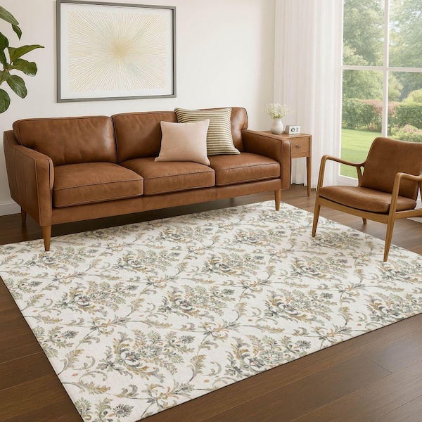 Chantille Machine Washable Indoor/Outdoor Abstract ACN2325 Ivory 9 ft. x 12 ft. Area Rug