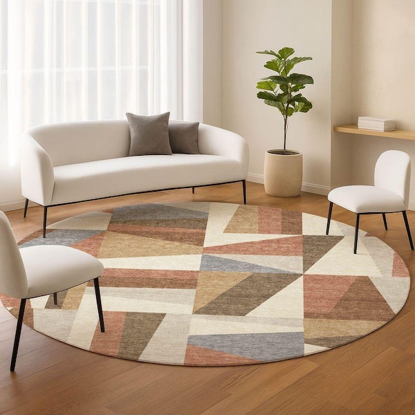 Chantille Machine Washable Indoor/Outdoor Abstract ACN2327 Paprika 8 ft. x 8 ft. Round Rug