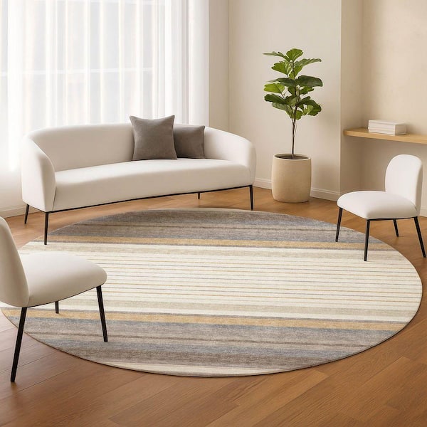 Chantille Machine Washable Indoor/Outdoor Abstract ACN2330 Ivory 8 ft. x 8 ft. Round Rug