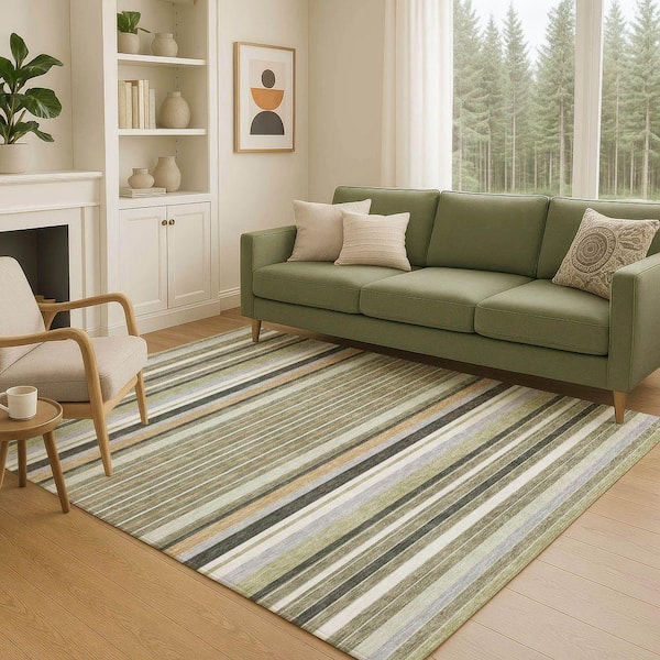 Chantille Machine Washable Indoor/Outdoor Abstract ACN2330 Olive 3 ft. x 5 ft. Area Rug