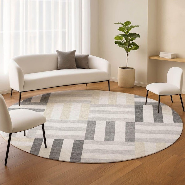 Chantille Machine Washable Indoor/Outdoor Abstract ACN2332 Gray 8 ft. x 8 ft. Round Rug