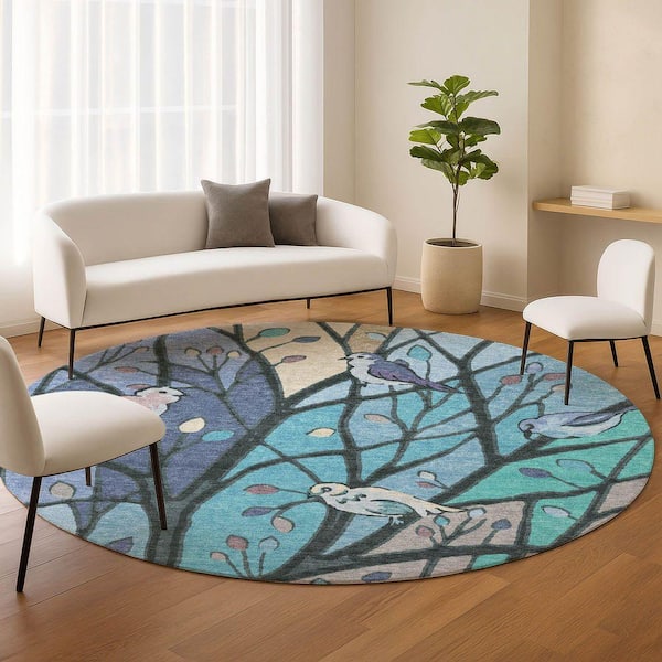 Chantille Machine Washable Indoor/Outdoor Abstract ACN2336 Blue 8 ft. x 8 ft. Round Rug