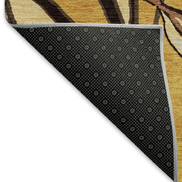Chantille Machine Washable Indoor/Outdoor Abstract ACN2336 Gold 8 ft. x 8 ft. Round Rug