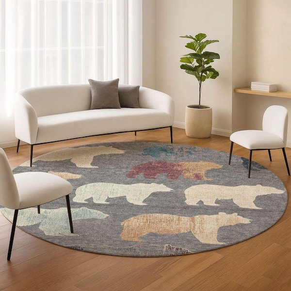 Chantille Machine Washable Indoor/Outdoor Abstract ACN2338 Gray 8 ft. x 8 ft. Round Rug