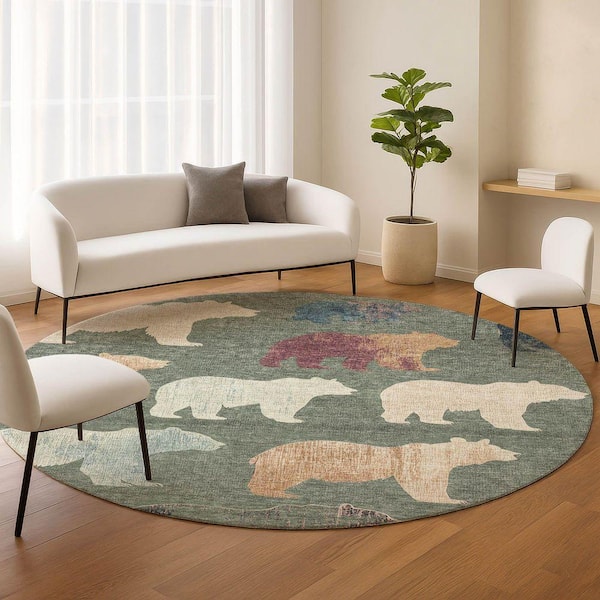 Chantille Machine Washable Indoor/Outdoor Abstract ACN2338 Green 8 ft. x 8 ft. Round Rug