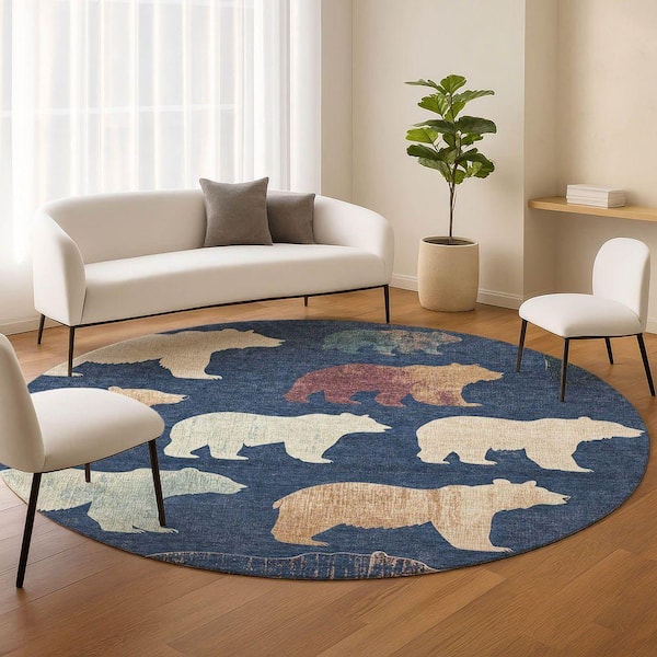 Chantille Machine Washable Indoor/Outdoor Abstract ACN2338 Navy 8 ft. x 8 ft. Round Rug