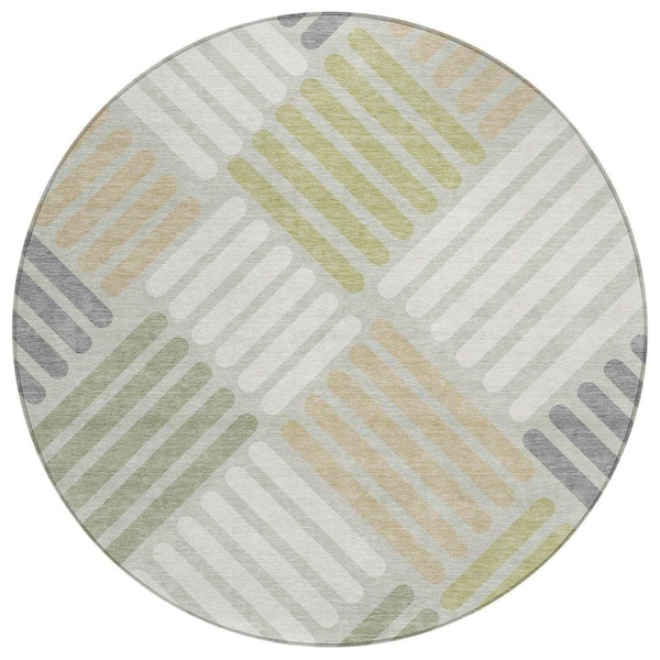Chantille Machine Washable Indoor/Outdoor Abstract ACN2339 Aloe 8 ft. x 8 ft. Round Rug