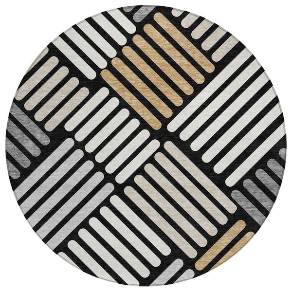 Chantille Machine Washable Indoor/Outdoor Abstract ACN2339 Black 8 ft. x 8 ft. Round Rug