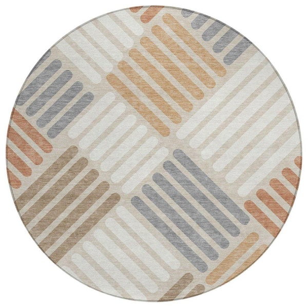 Chantille Machine Washable Indoor/Outdoor Abstract ACN2339 Copper 8 ft. x 8 ft. Round Rug