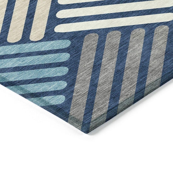 Chantille Machine Washable Indoor/Outdoor Abstract ACN2339 Navy 8 ft. x 8 ft. Round Rug