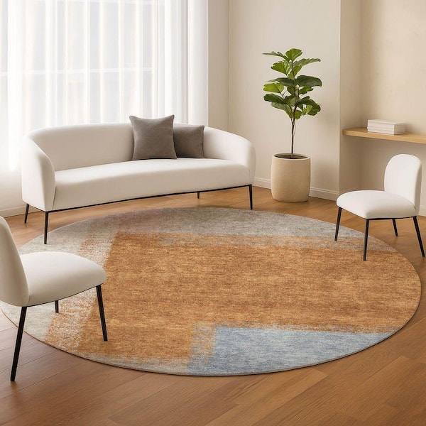 Chantille Machine Washable Indoor/Outdoor Abstract ACN2341 Rust 8 ft. x 8 ft. Round Rug