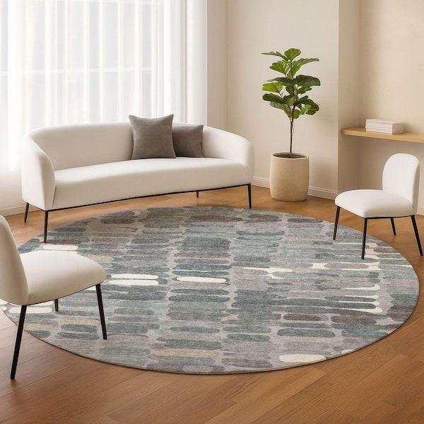 Chantille Machine Washable Indoor/Outdoor Abstract ACN2349 Gray 8 ft. x 8 ft. Round Rug