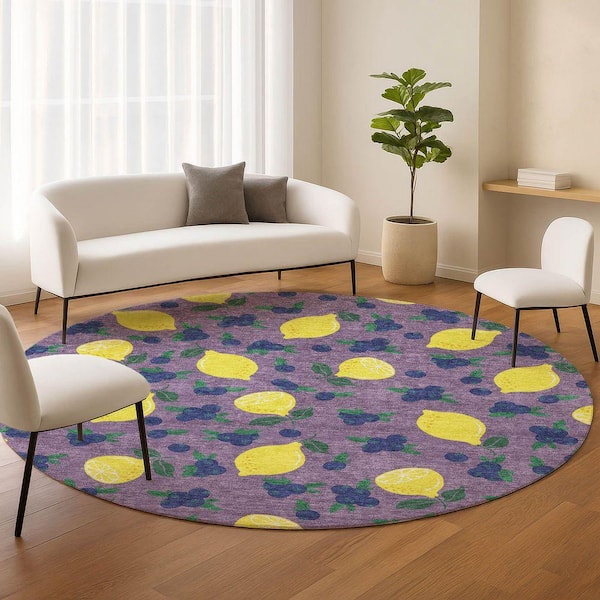Chantille Machine Washable Indoor/Outdoor Abstract ACN2354 Lavender 8 ft. x 8 ft. Round Rug