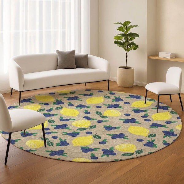 Chantille Machine Washable Indoor/Outdoor Abstract ACN2354 Putty 8 ft. x 8 ft. Round Rug