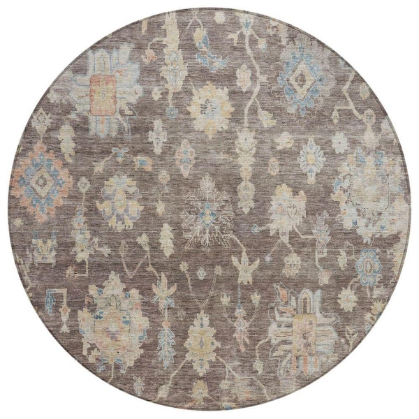 Chantille Machine Washable Indoor/Outdoor Abstract ACN2355 Chocolate 8 ft. x 8 ft. Round Rug