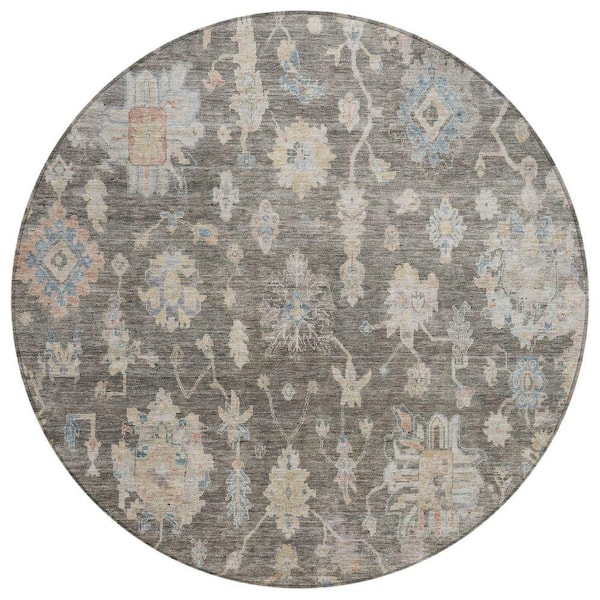 Chantille Machine Washable Indoor/Outdoor Abstract ACN2355 Gray 8 ft. x 8 ft. Round Rug