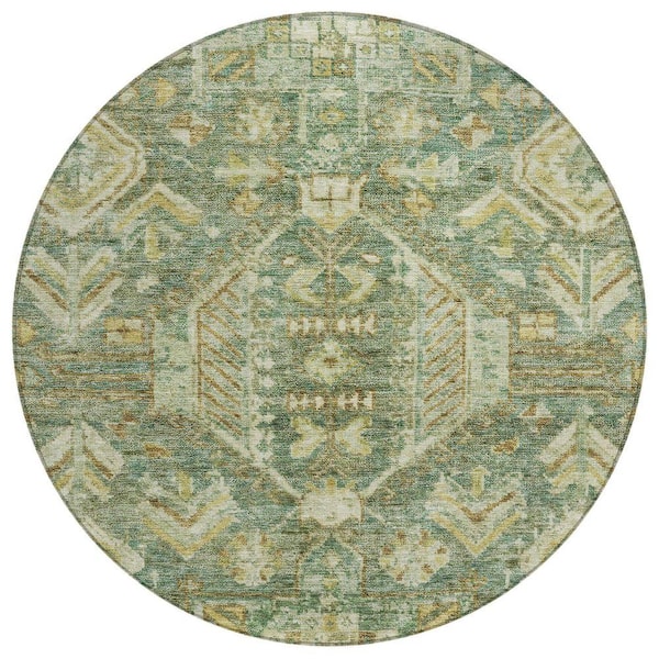Chantille Machine Washable Indoor/Outdoor Abstract ACN2356 Fern 8 ft. x 8 ft. Round Rug