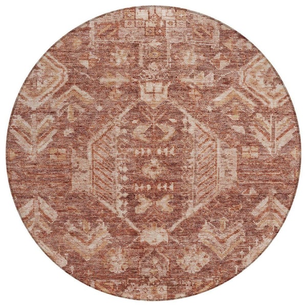 Chantille Machine Washable Indoor/Outdoor Abstract ACN2356 Paprika 8 ft. x 8 ft. Round Rug