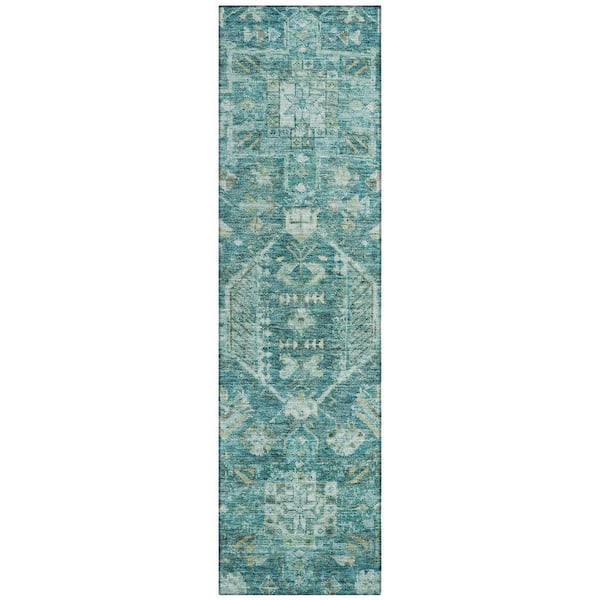 Chantille Machine Washable Indoor/Outdoor Abstract ACN2356 Turquoise 2 ft. x 7 ft. Runner Rug