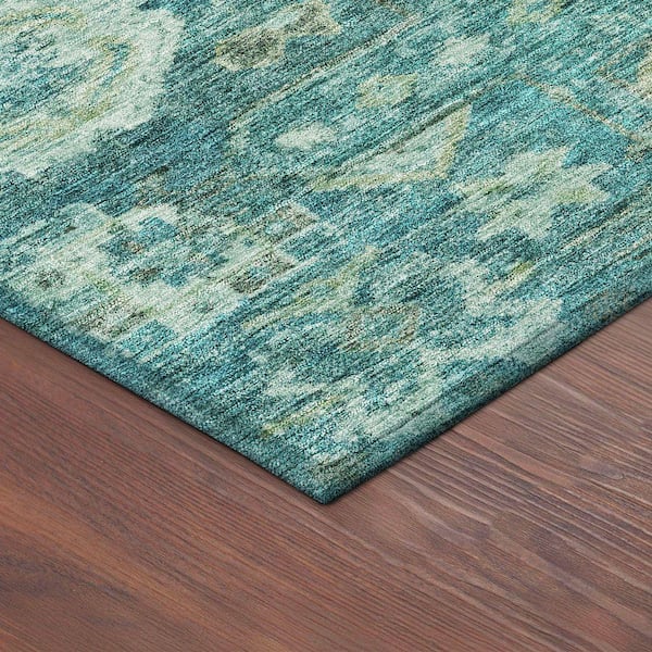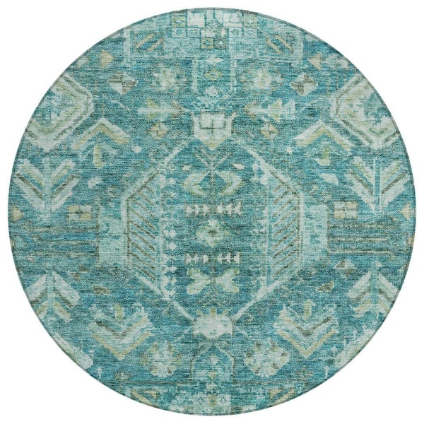 Chantille Machine Washable Indoor/Outdoor Abstract ACN2356 Turquoise 8 ft. x 8 ft. Round Rug