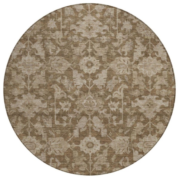 Chantille Machine Washable Indoor/Outdoor Abstract ACN2358 Brown 8 ft. x 8 ft. Round Rug