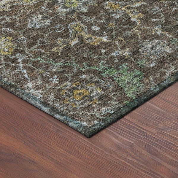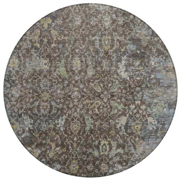 Chantille Machine Washable Indoor/Outdoor Abstract ACN2359 Chocolate 8 ft. x 8 ft. Round Rug