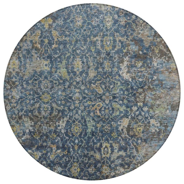Chantille Machine Washable Indoor/Outdoor Abstract ACN2359 Navy 8 ft. x 8 ft. Round Rug