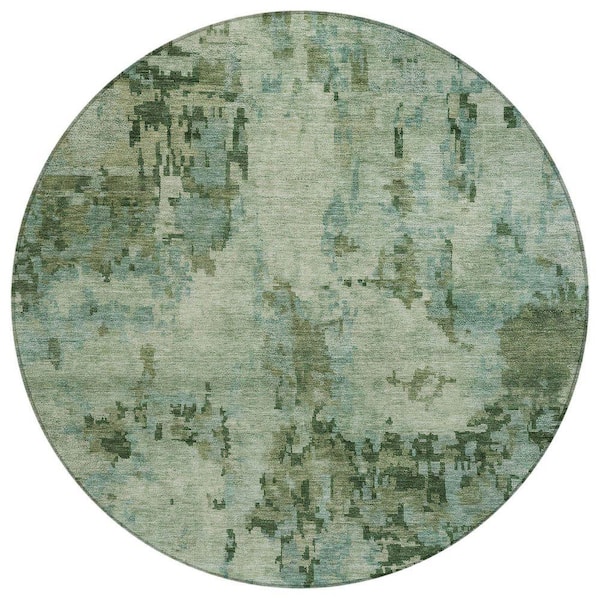 Chantille Machine Washable Indoor/Outdoor Abstract ACN2360 Sage 8 ft. x 8 ft. Round Rug