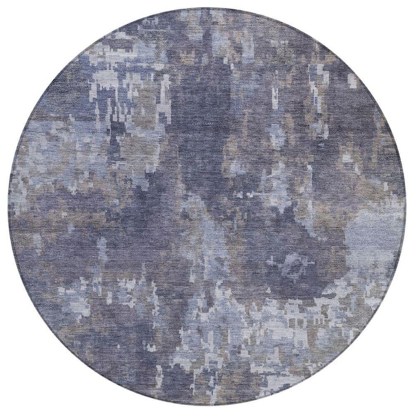 Chantille Machine Washable Indoor/Outdoor Abstract ACN2361 Plum 8 ft. x 8 ft. Round Rug
