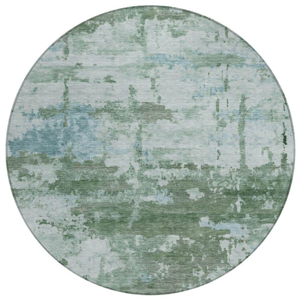 Chantille Machine Washable Indoor/Outdoor Abstract ACN2362 Aloe 8 ft. x 8 ft. Round Rug