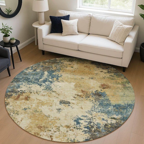 Chantille Machine Washable Indoor/Outdoor Abstract ACN2363 Beige 8 ft. x 8 ft. Round Rug