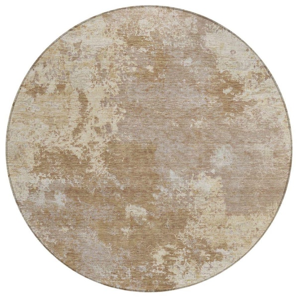 Chantille Machine Washable Indoor/Outdoor Abstract ACN2364 Brown 8 ft. x 8 ft. Round Rug