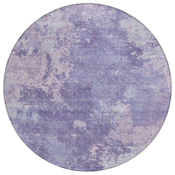 Chantille Machine Washable Indoor/Outdoor Abstract ACN2364 Plum 8 ft. x 8 ft. Round Rug