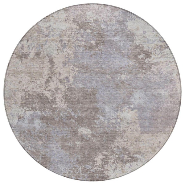 Chantille Machine Washable Indoor/Outdoor Abstract ACN2364 Taupe 8 ft. x 8 ft. Round Rug