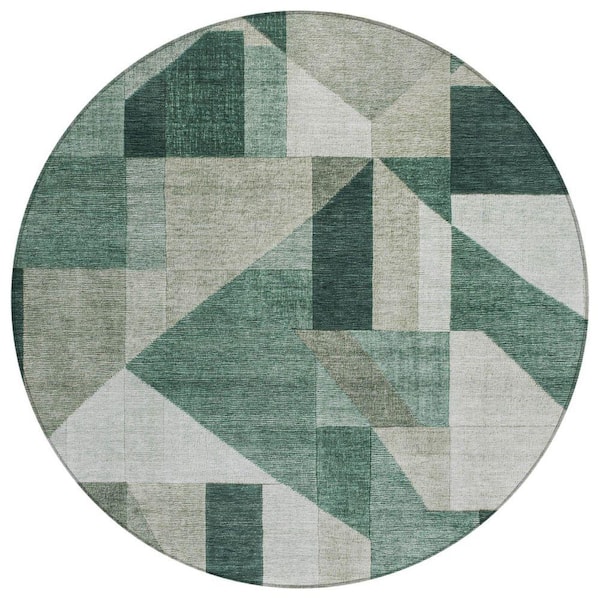 Chantille Machine Washable Indoor/Outdoor Abstract ACN2365 Basil 8 ft. x 8 ft. Round Rug