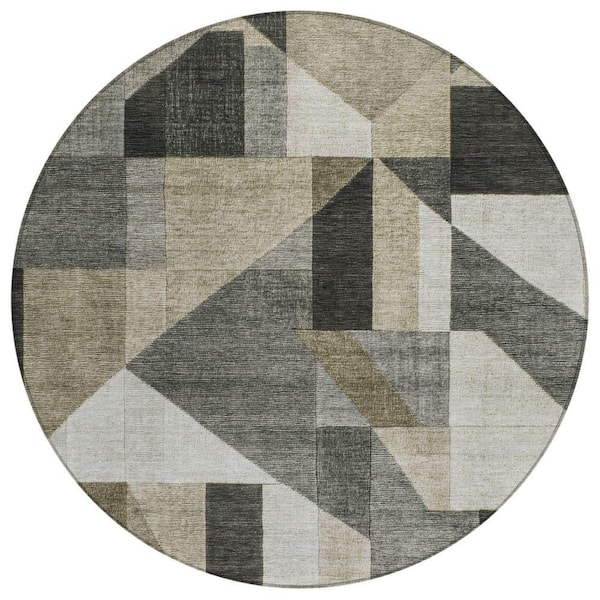 Chantille Machine Washable Indoor/Outdoor Abstract ACN2365 Pewter 8 ft. x 8 ft. Round Rug