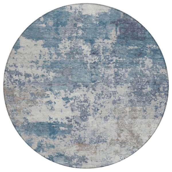 Chantille Machine Washable Indoor/Outdoor Abstract ACN2366 Blue 8 ft. x 8 ft. Round Rug