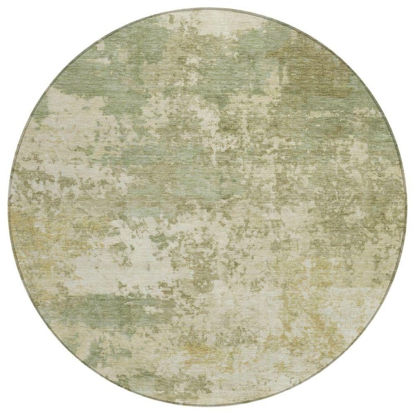 Chantille Machine Washable Indoor/Outdoor Abstract ACN2366 Celery 8 ft. x 8 ft. Round Rug