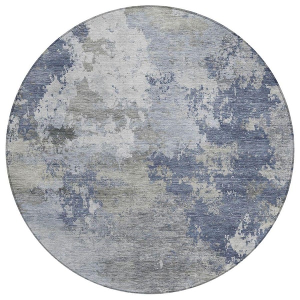 Chantille Machine Washable Indoor/Outdoor Abstract ACN2367 Denim 8 ft. x 8 ft. Round Rug