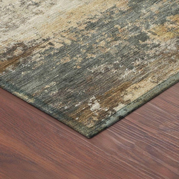 Chantille Machine Washable Indoor/Outdoor Abstract ACN2368 Khaki 8 ft. x 8 ft. Round Rug