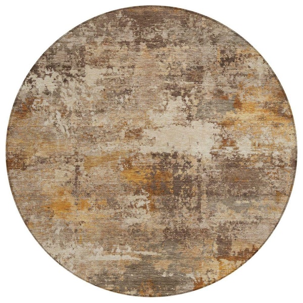 Chantille Machine Washable Indoor/Outdoor Abstract ACN2368 Paprika 8 ft. x 8 ft. Round Rug