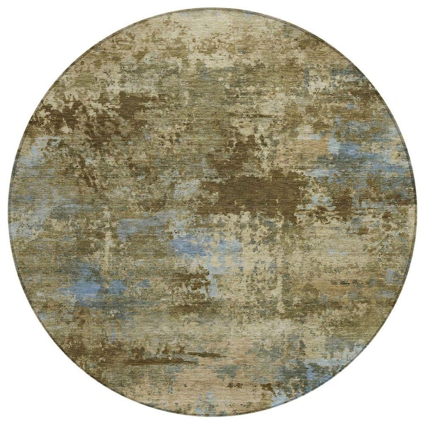 Chantille Machine Washable Indoor/Outdoor Abstract ACN2370 Brown 8 ft. x 8 ft. Round Rug