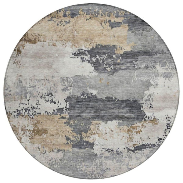 Chantille Machine Washable Indoor/Outdoor Abstract ACN2372 Charcoal 8 ft. x 8 ft. Round Rug