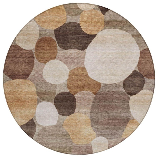 Chantille Machine Washable Indoor/Outdoor Abstract ACN2375 Brown 8 ft. x 8 ft. Round Rug