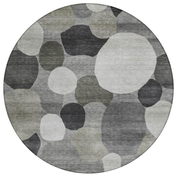 Chantille Machine Washable Indoor/Outdoor Abstract ACN2375 Gray 8 ft. x 8 ft. Round Rug