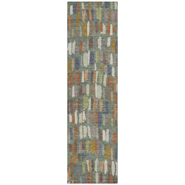 Chantille Machine Washable Indoor/Outdoor Abstract ACN2377 Basil 2 ft. x 7 ft. Runner Rug