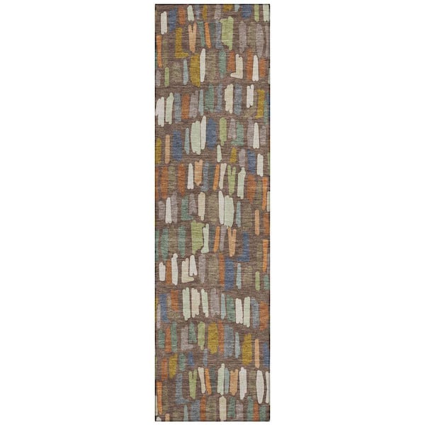 Chantille Machine Washable Indoor/Outdoor Abstract ACN2377 Chocolate 2 ft. x 7 ft. Runner Rug