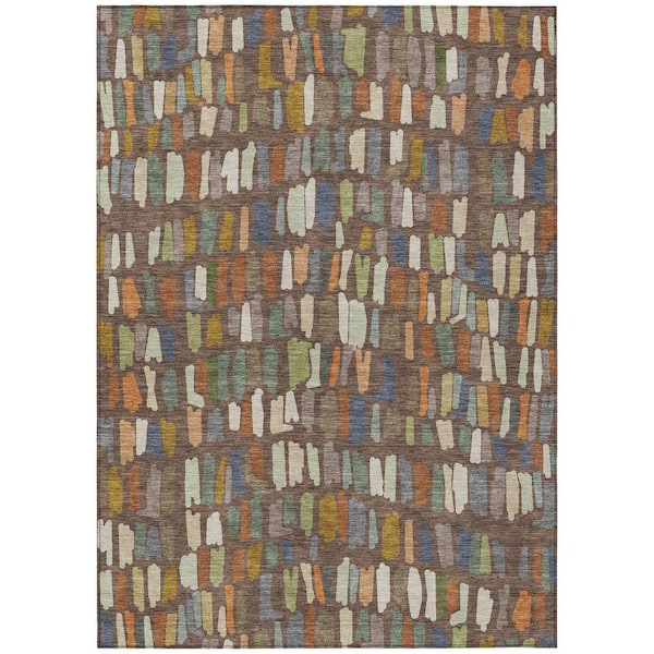 Chantille Machine Washable Indoor/Outdoor Abstract ACN2377 Chocolate 3 ft. x 5 ft. Area Rug
