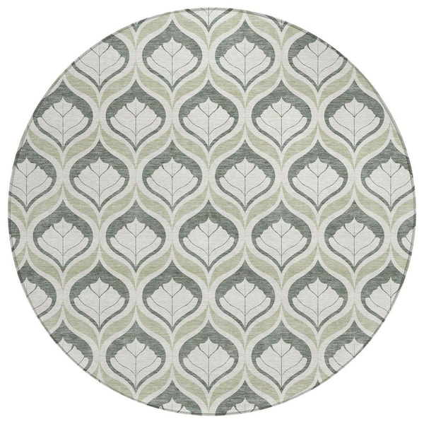 Chantille Machine Washable Indoor/Outdoor Abstract ACN2379 Celery 8 ft. x 8 ft. Round Rug